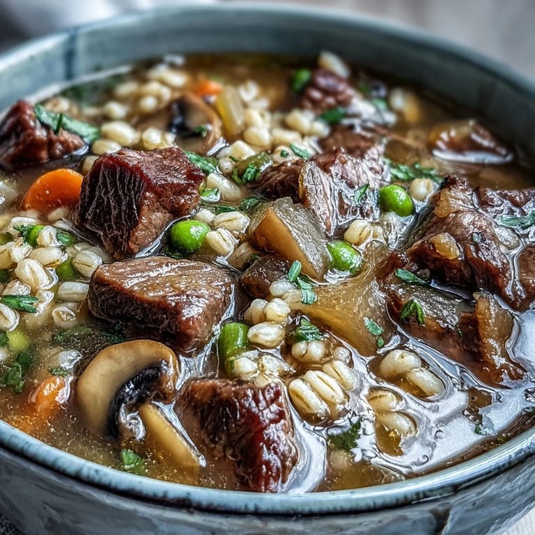 Save My neighbor stopped by one February afternoon when snow was piling up outside, and I had nothing in the house except beef, barley, and whatever vegetables were lurking in the crisper drawer. She sat at the kitchen counter while I threw everything into a pot, and by the time the soup had simmered for an hour, her coat was completely forgotten on the back of the chair. That's when I realized this wasn't just a recipe—it was the kind of dish that makes people want to stay longer than they planned.