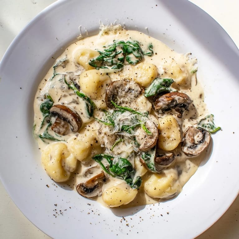 Last winter, my friend Elisa stopped by unexpectedly during a snowstorm, shivering and laughing about her impulsive decision to walk over. I happened to be making this gnocchi and watched her face transform from cold-pinched to absolutely blissful as she took her first bite. The earthy mushrooms and bright spinach balanced the richness perfectly. She swiped a piece of bread through the remaining sauce and declared it should be bottled and sold. We sat at my counter for hours after, snow piling outside while we scraped the pan clean.
