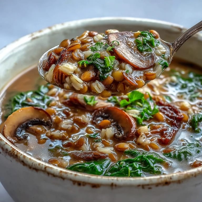Save There's something about a pot of lentil soup that makes a kitchen feel less like a room and more like a sanctuary. My neighbor stopped by one October afternoon, and the aroma of caramelizing mushrooms and simmering barley drew her straight to the stove before she even said hello. That's when I realized this soup—layered with red and brown lentils, chewy barley, and earthy mushrooms—had become the dish I make when I want people to feel truly welcomed. It's simple enough to throw together on a busy weeknight, yet substantial enough to make you feel like you've done something meaningful.