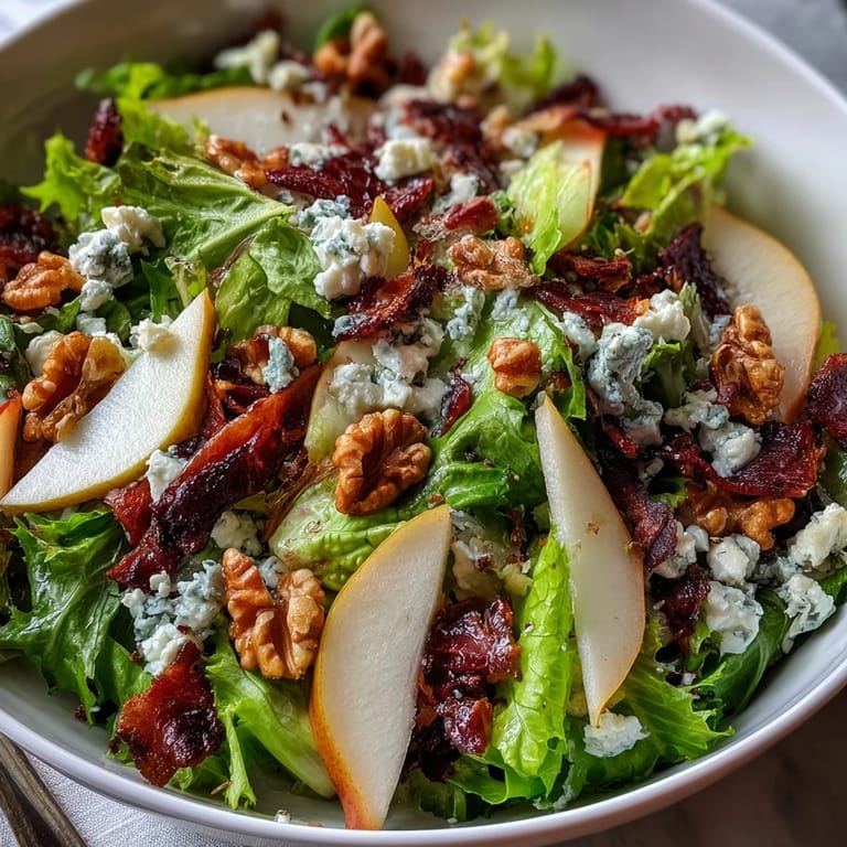 Save My neighbor stopped by one afternoon with a pear from her garden, still warm from the sun, and casually mentioned she'd been craving something with blue cheese. Twenty minutes later, we were eating this salad straight from the bowl, both of us surprised at how the bitter frisée played against the sweet fruit. That's when I realized the best meals happen when you stop overthinking and just let good ingredients speak to each other.
