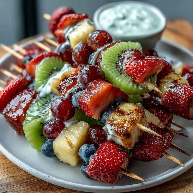 The night before, wash and cut everything except the banana—store each component in its own small container in the fridge so assembly day is just sliding things together. I learned this after spending an entire morning chopping fruit, and now I prep while my coffee brews, which makes the whole process feel less rushed. Threading the skewers takes maybe five minutes once all fruit is ready, so most of your time gets spent on prep rather than assembly.
