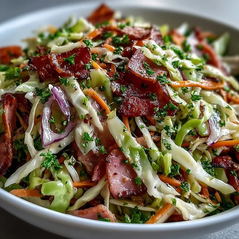 Save This German Cabbage Coleslaw With Shredded Ham offers a smoky, tangy, and hearty experience. Featuring crisp green and red cabbage, fresh carrots, and flavorful smoked ham, it is tossed in a classic German-style dressing for a satisfying twist on tradition. Perfect as a quick side dish, this recipe brings a savory depth to any meal.